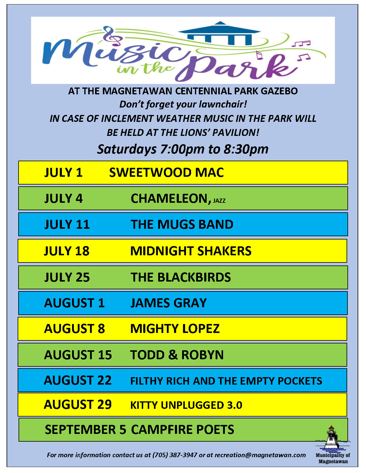 2026 MUSIC IN THE PARK LINE UP
