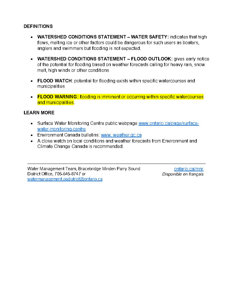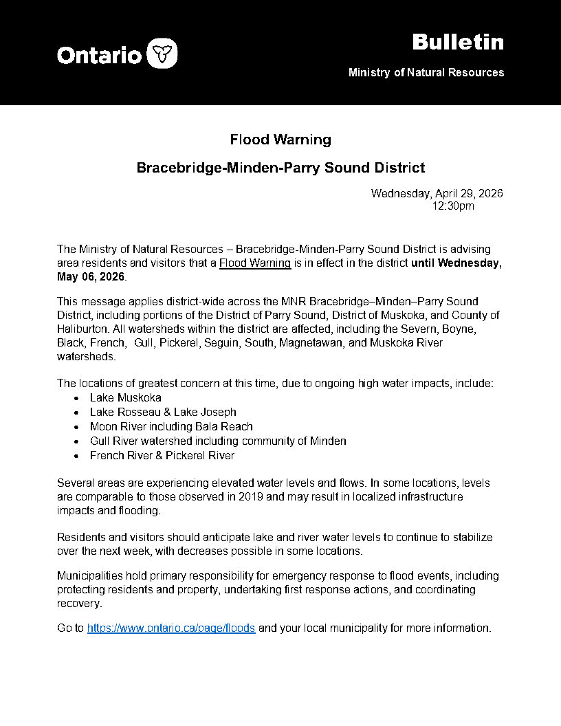 April 29, 2026 Flood Warning Bracebridge-Minden-Parry Sound District