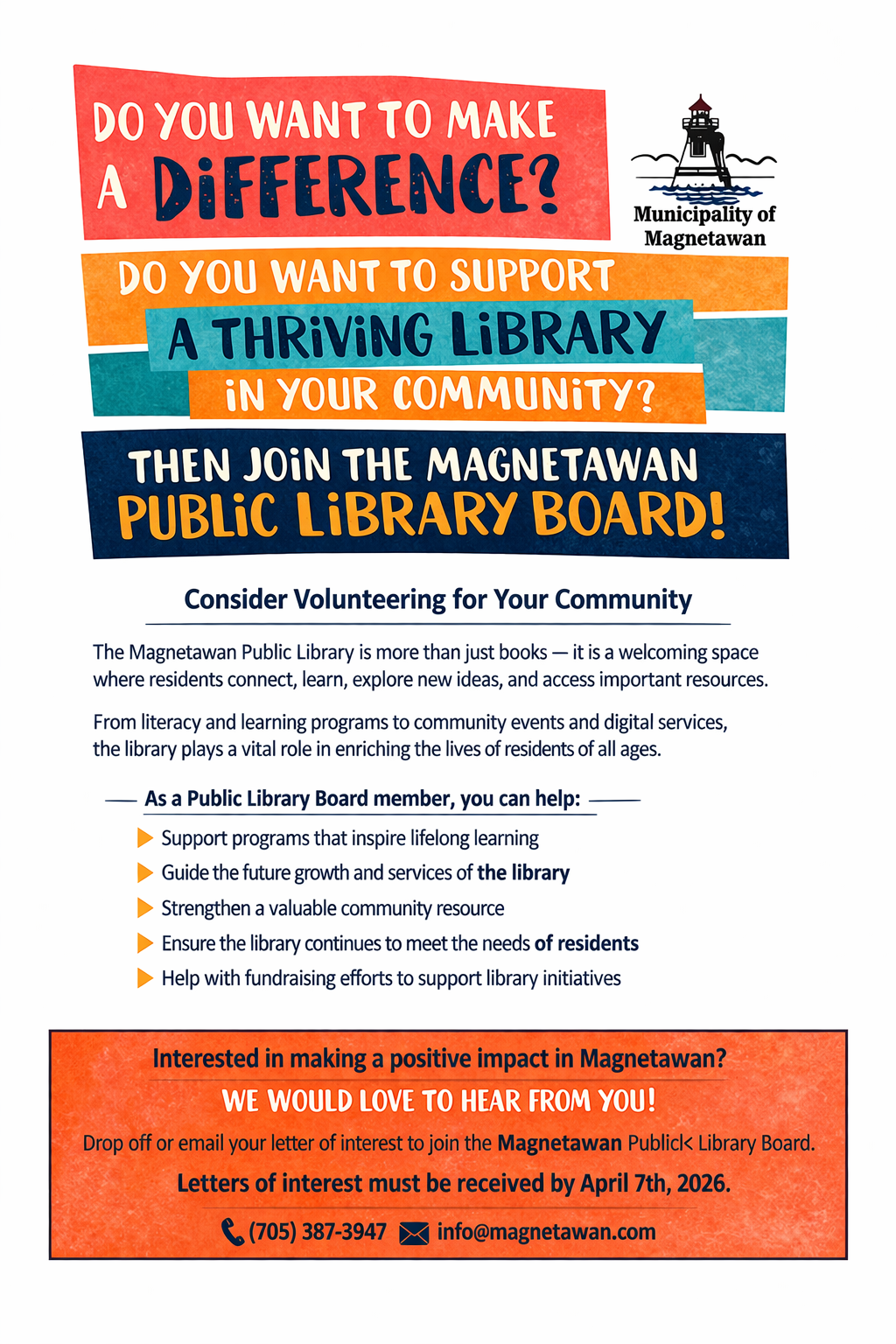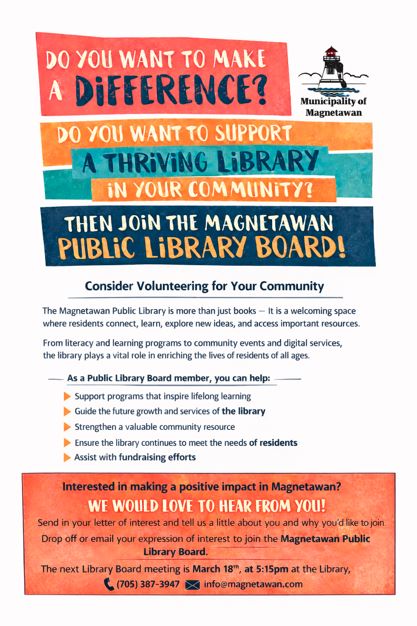 JOIN THE MAGNETAWAN PUBLIC LIBRARY BOARD!
