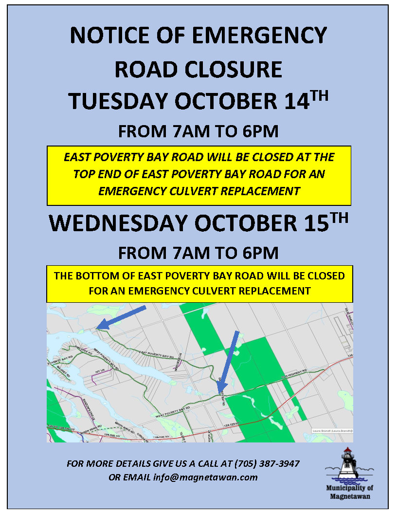 NOTICE OF EMERGENCY ROAD CLOSURE TUESDAY OCTOBER 14TH & 15TH EAST POVERTY BAY