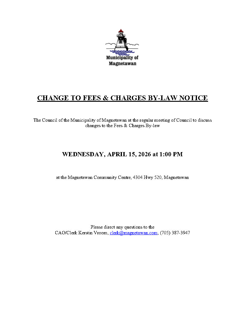 PUBLIC NOTICE CHANGE TO FEES & CHARGES BY-LAW NOTICE
