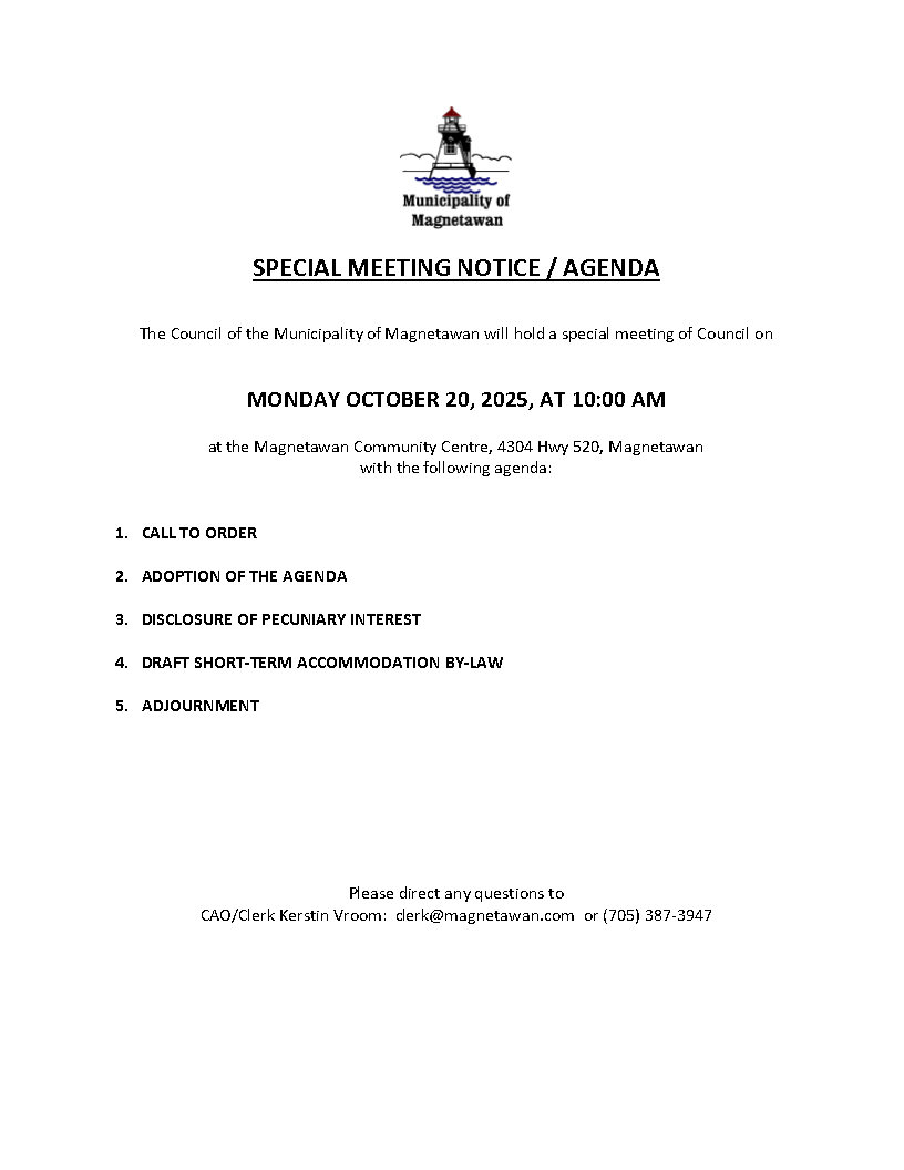 SPECIAL MEETING OF COUNCIL NOTICE MONDAY OCTOBER 20, 2025