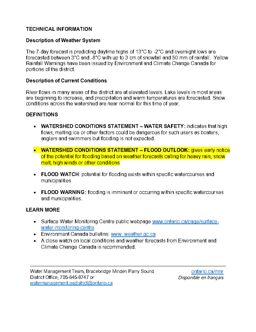 Watershed Conditions Statement - Flood Outlook - April 2, 2026